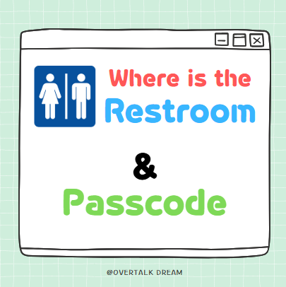 - "Is there a passcode for the bathroom?" (화장실 비밀번호가 있나요?)